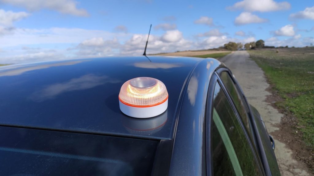 Die Warnleuchte V16 ist ein modernes Sicherheitssignal, das als Ersatz für Warntriangeln dient und auf das Dach des Fahrzeugs gesetzt wird, um andere Verkehrsteilnehmer zu alarmieren.